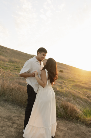 This is one of my absolute favorite spots to shoot! Quail Hill in Irvine has these beautiful open fields and scenic trails that scream effortless romance. Technically, we’re only supposed to shoot on the trail, but if we get lucky, we might get to frolic in the fields a little bit! It’s gorgeous all year round. In spring, after some rain, it’s so lush and green, while other times of the year, the brown tones give it a dreamy, earthy vibe.